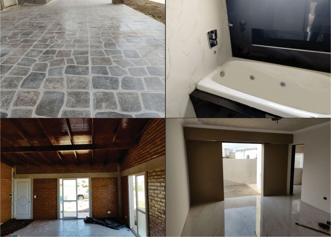 Incluye también: Cerámicos en todos los pisos, cerámicos en paredes de los baños y en cocina sector mesada, agua caliente y fria en termofusuión con llaves de paso, instalaciones eléctricas, puntos, tomas, bastidores y todo el cableado, terminaciones en fino.